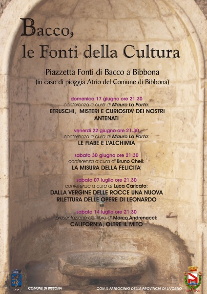 All'interno della Rassegna Bacco "Le Fonti della Cultura", Presentazione del libro di Marco Andrenacci alle ore 21.30 presso le Fonti di Bacco di Bibbona