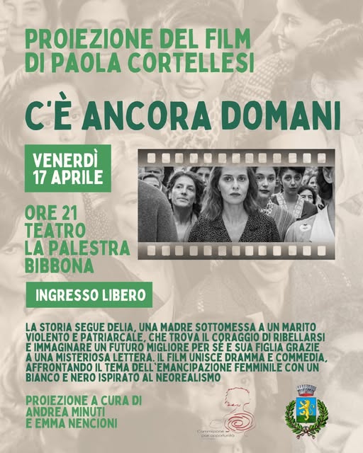 Venerdì 17 Aprile alle ore 21 Teatro La Palestra Bibbona proiezione del film di Paola Cortellesi C'È ANCORA DOMANI.